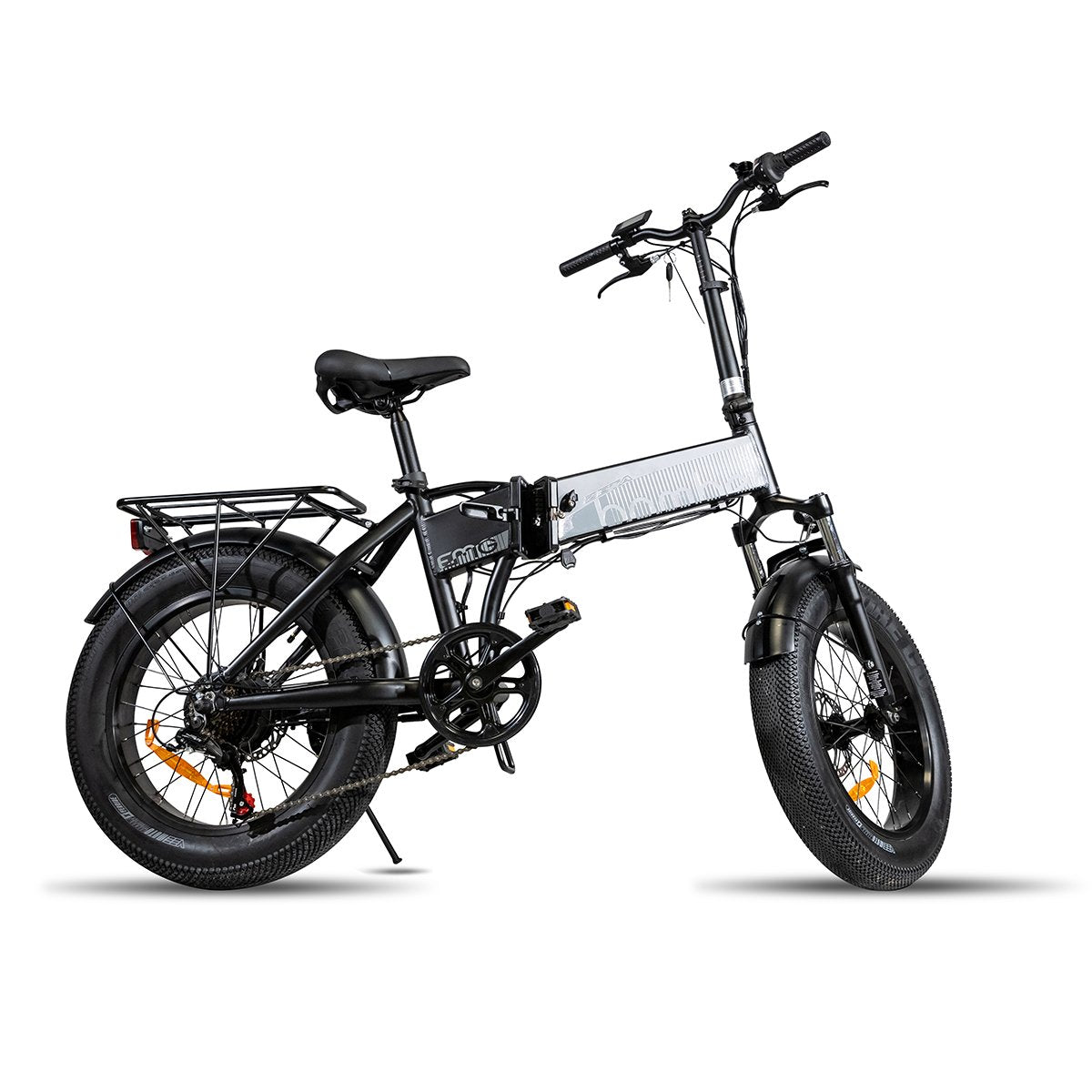 Der Klassiker 6061 Aluminiumfaltsrahmen Und mit erneuten Grafiken charakterisiert es den Stil des EMG-Fettbikes durch Erleichterung des Transports. Der Shimano Getriebe und Deryliller Präzise und Qualität unterstützen die Pedale, die problemlos aus unterschiedlichem Widerstandsgraden das Pedalen ohne Schwierigkeiten übertragen.